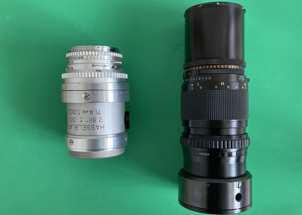 Zerlegtes, gereinigtes und revidiertes Objektiv: Nikon NIKKOR ED, 300 mm, 1 : 2,8 (rechts)
